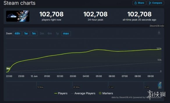 韩国Shift Up工作室开发的3A级动作冒险游戏《剑星》PC版现已在Steam平台正式发售,并迅速引发玩家热潮。据SteamDB最新统计数据显示,截至发稿时,《剑星》PC版的同时在线人数峰值已突破10万大关。